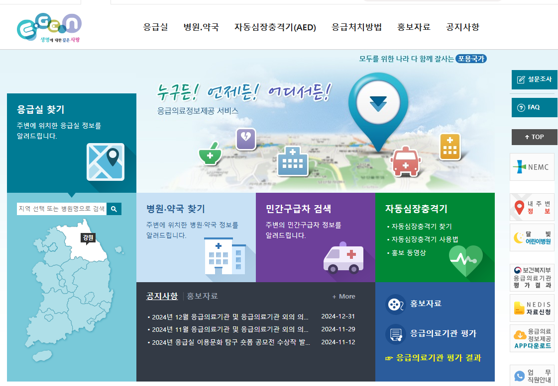 응급의료포털 홈페이지 검색