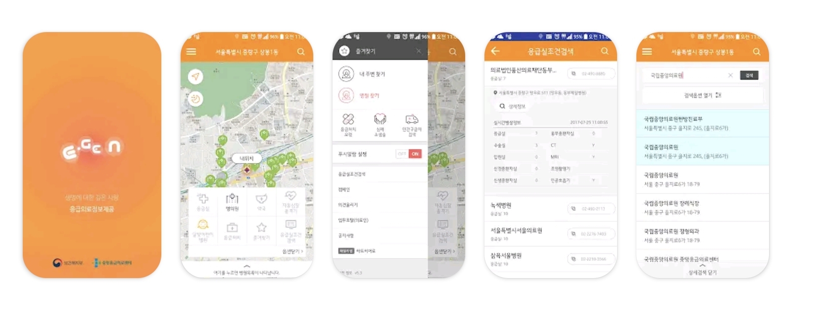 응급의료정보제공 앱 이젠(E-Gen) 검색